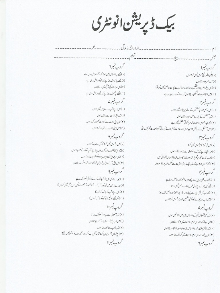 Bdi Urdu Pdf Depression Psychology Positive Psychology